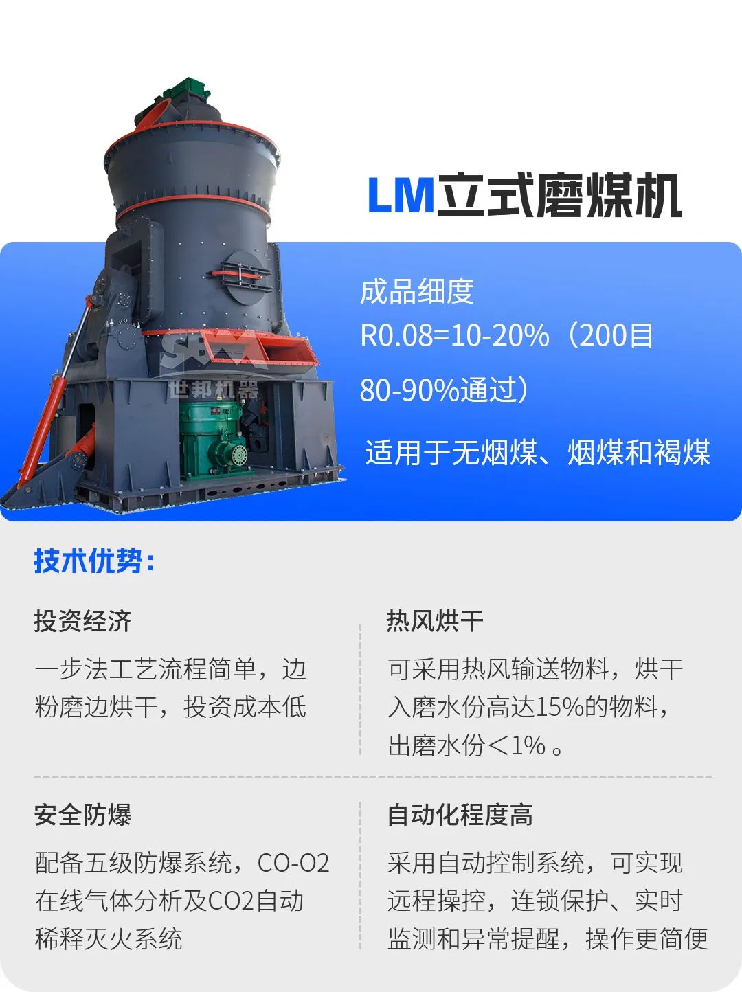 在生石灰煅燒過程中,煤粉質(zhì)量直接影響石灰窯的熱效率與產(chǎn)品質(zhì)量。上海世邦推出的LM立式磨煤機,專為石灰窯配套煤粉制備設(shè)計。